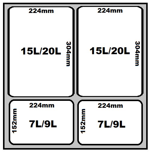 Skomponuj własny zestaw koszy do szafki lub szuflady o szer. 45 cm, 50 cm, 60 cm, 80 cm, 90 cm, głębokości 50 cm - wg poniższego schematu.