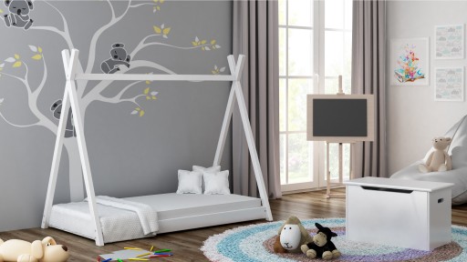 Wykonane jest w całości z wysokiej jakości drewna sosnowego. W nocy łóżeczko pełni funkcję wygodnego, bezpiecznego spania z zaokrąglonymi krawędziami i materacem ułożonym na niewielkiej wysokości. W dzień, może zamienić się w namiot, który jest świetnym miejscem do zabawy dla dzieci.