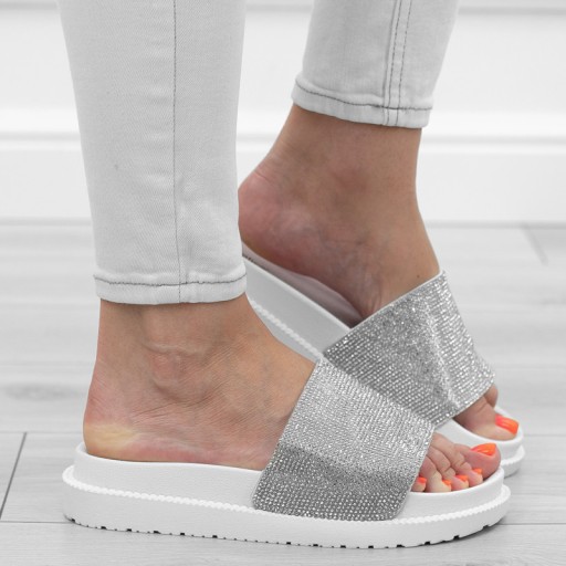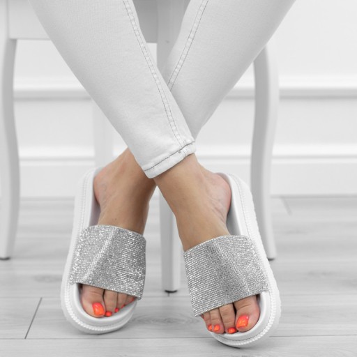 БЕЛЫЕ СЕРЕБРЯНЫЕ ТАПОЧКИ НА ПЛАТФОРМЕ ЦИРКОНИЙ SF-01 г.39