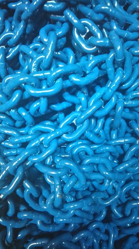 - Łańcuch krótkoogniwowy bocznie zgrzewany o wysokiej wytrzymałości, może być ocynkowany i lakierowany lub sam lakierowany (kolor niebieski) , w wiązce po 50 m.