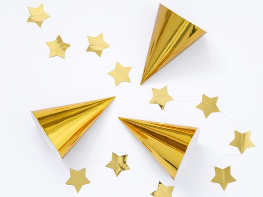 Przeszywana girlanda Gwiazdki wykonana z folii w kolorze złotym lustrzanym,