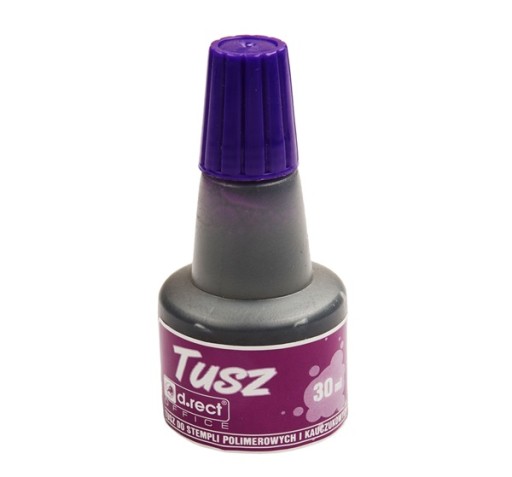 Tusz wodny o intensywnym, nieblaknącym kolorze. Do stosowania w pieczątkach ręcznych i samotuszujących z kauczukowych (gumową) lub polimerową płytką stemplującą. Niezbędny w każdym biurze. Tusz po wyschnięciu nie rozpuszcza się w wodzie. Buteleczka 30 ml z aplikatorem ułatwiającym nasączanie poduszek i nakrętką w kolorze tuszu. Dostępny w pięciu kolorach. Przeznaczony do stempli polimerowych kauczukowych.