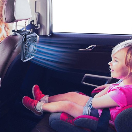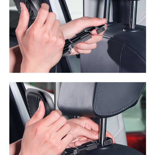 Baseus Fan Car Backseat Foldable White CXZD-02 - mały wentylator przeznaczony do montażu na zagłówku w samochodzie. Nie hałasuje, 3 prędkości, cyrkulacja powietrza w dowolnym kierunku dzięki możliwości obrotu o 360 stopni. Można go również postawić w innych miejscach, np. na stole obok komputera. Kilka sposobów zasilania: ładowarka samochodowa, ładowarka ścienna, port USB laptopa, power bank itp.