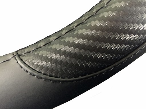 Pokrowiec na kierownicę z wysokiej jakości materiałów (ekoskóra połączona z imitacją karbonu).