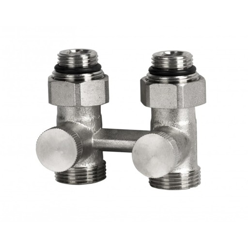 Wysokiej jakości zespół przyłączeniowy z zaworami grzejnikowymi do podłączenia urządzenia grzewczego do instalacji.