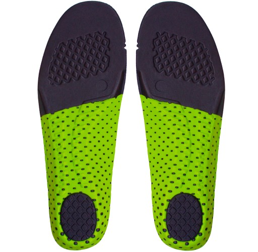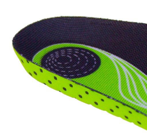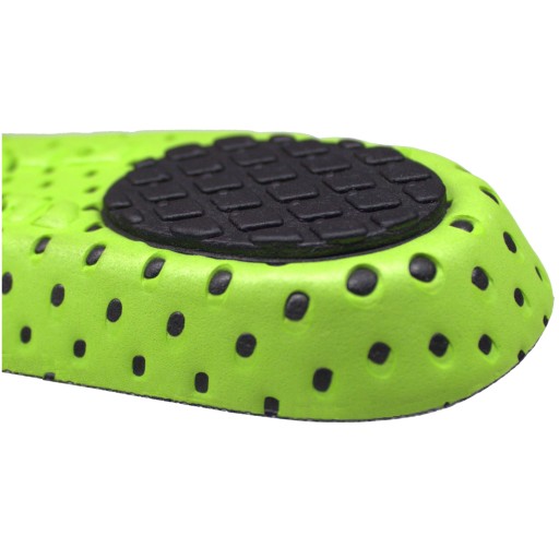 - Nieregularna struktura wkładki podnosi właściwości amortyzujące. Powietrze lepiej krąży w obuwiu, co pomaga w odprowadzeniu nadmiaru ciepła ze stopy, przez co zmniejsza się potliwość stóp.