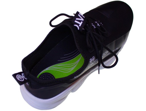 - Materiał mający kontakt z podeszwą wykonany jest z pianki lateksowej EVA (wykonane są z lekkiej pianki, która zapewnia odpowiednią amortyzację stopy nie obciążając przy tym nadmiernie buta)