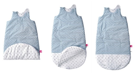 Innowacyjny, wszyty wokół śpiworka zamek, ułatwia zmianę pieluchy, bez potrzeby rozpinania całości i wybudzania dziecka ze snu.