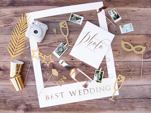 Gadżety do zdjęć Let's Celebrate w kolorze złotym, mix wzorów - 8 sztuk