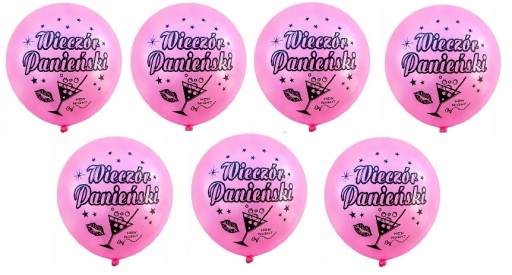 - 7 różowych balonów z czarnymi napisami - rozmiar ok. 30 cm