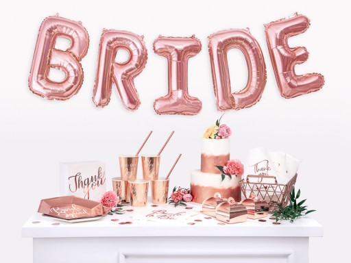 Serwetki papierowe w kolorze białym z napisem "Bride to Be" w kolorze różowego złota