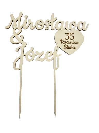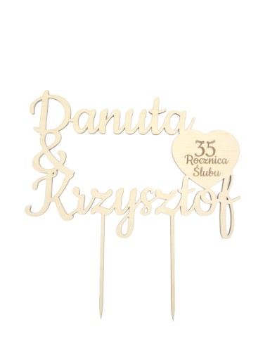 Na topperze możemy umieścić imiona Państwa Młodych. Serduszko umieszczone na topperze symbolizuje miłość i wspólnych chwilach spędzonych przez kolejne lata waszego życia razem.