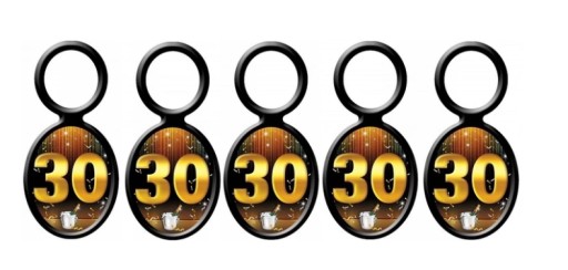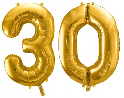- Balony foliowy - cyfry "3" i "0" w kolorze złotym, z metalicznym połyskiem (wysokość przed napompowaniem około 70 cm)