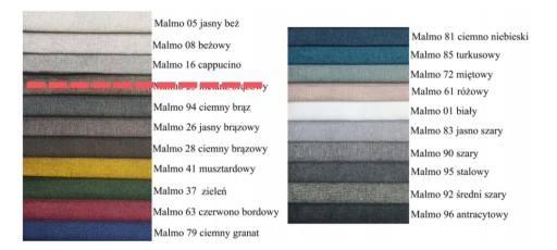 Materiały obiciowe MANILA dostępne w 41 kolorach /oznaczenie kolorów producenta/: