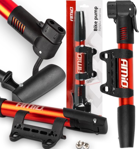- Pompka rowerowa dostosowana do dwóch rodzajów wentyli (prosta i standardowy samochodowy)