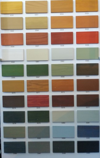 Kolory z karty Tikkurila Semi-Transparent Wood Finishes oraz Tikkurila Deco Grey.