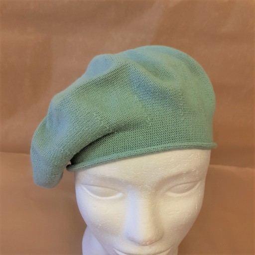 Beret dziany bawełniany . Rozmiar uniwersalny - pasuje na obwód głowy od 55 do 58 cm .