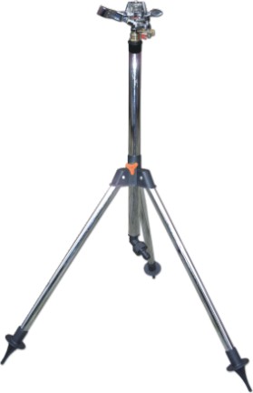 Zraszacz mosiężny, obrotowy. Zamontowany na statywie 90 cm. Możliwość regulacji powierzchni zraszania. Doskonały do zastosowania w sadach i ogrodach.