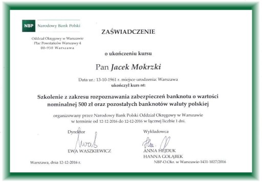 Nasi pracownicy są szkoleni w zakresie zabezpieczeń polskich banknotów przez profesjonalistów z Narodowego Banku Polskiego.