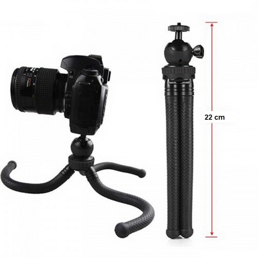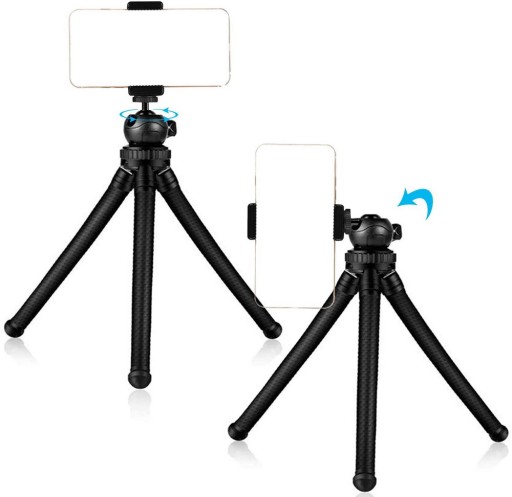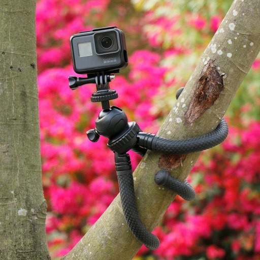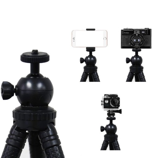 Elastyczny Statyw z obrotową głowicą 3D z gwintem 1/4" oraz mocowaniem do kamer sportowych typu GoPro oraz szczękami do Smartfonów