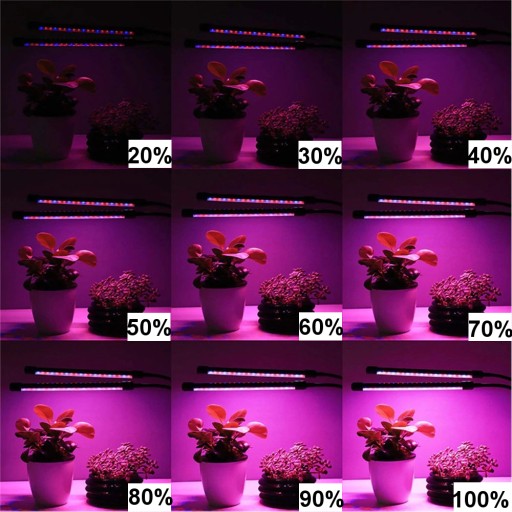 - Lampa posiada regulację pomiędzy 9 stopniami świecenia: od 20% do 100%. Pozwala to na dostosowanie ilości światła do potrzeb roślin, jak i do warunków panujących w pomieszczeniu.