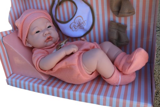 Realistyczny bobas w eleganckim pudełku na prezent.