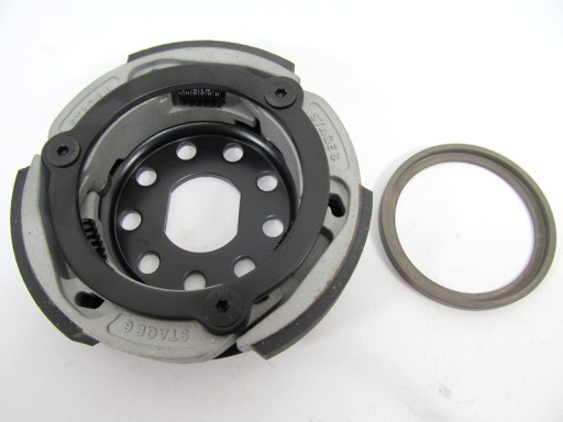 Przedmiotem oferty jest niedawno wprowadziło na rynek długo oczekiwane sprzęgło Stage6 Sport Pro. Perfekcyjne, trzyokładzinowe sprzęgło z dużym zakresem regulacji. Regulacja możliwa dzięki dostępnym różnym twardością sprężynek oraz dwoma możliwymi ustawieniami sprężynek w samym sprzęgle. Dodatkowy pierścień wzmacniający znacznie zwiększa możliwości zastosowania tego sprzęgła - nie tylko w serii, i po tuningu poziomu sport, ale śmiało także w mocniejszych skuterach po tuningu na poziomie midrace. Sprzęgło Stage6 Sport Pro jest bardzo interesującą alternatywą dla będących już na rynku sprzęgieł sportowych. Do najmocniejszych jednostek wciąż polecamy sprzęgło Stage6 Torque Control. Załączona podstawa sprężyny dociskowej dedykowana jest tylko dla silników CPI oraz Minarelli.