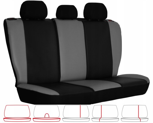 Oferta dotyczy modeli z fotelami standardowymi i kanapą z tyłu - pokrowce nie są przystosowane na fotele kubełkowe i fotele pojedyncze w drugim rzędzie.