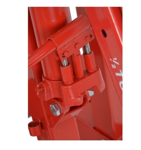 - Siłownik tego żurawia podnosi dwukrotnie szybciej, ponieważ posiada dwa tłoczki. Wysuw tłoka następuje zarówno przy podnoszeniu, jak i opuszczaniu dźwigni siłownika. Żuraw posiada również rączkę ułatwiającą jego przemieszczanie.