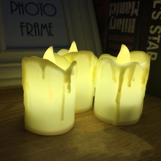 Świeczka jest kremowa i po włączeniu, świeci światłem stałym na kolor ciepły żółty.