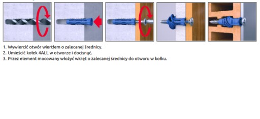 - Skrzydełka antyrotacyjne wzmacniają przyczepność kołka w szerokim zakresie podłoży, w tym w miękkich podłożach murowych i w płycie gipsowo-kartonowej.