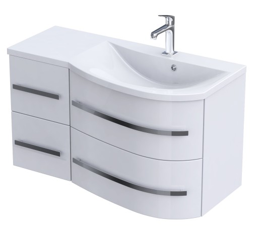 Szafka dostępna również w kolorze szary połysk lub z umywalką po lewej stronie.
