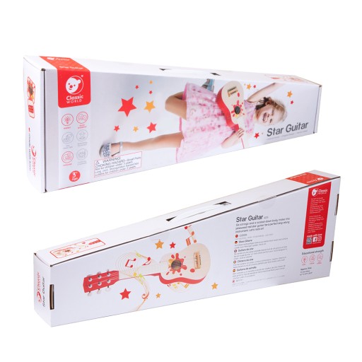 Gitara akustyczna pozwoli na odkrycie w dziecku talentu, który może ukształtować całe jego dorosłe życie. Nauka gry sprawi frajdę i wspomoże w rozwijaniu talentów. Zabawka jest odzwierciedleniem prawdziwej klasycznej gitary co sprawi, iż mały artysta chętniej rozpocznie naukę. Gra na gitarze wpływa pozytywnie na rozwój maluchów poprzez obcowanie z muzyką.