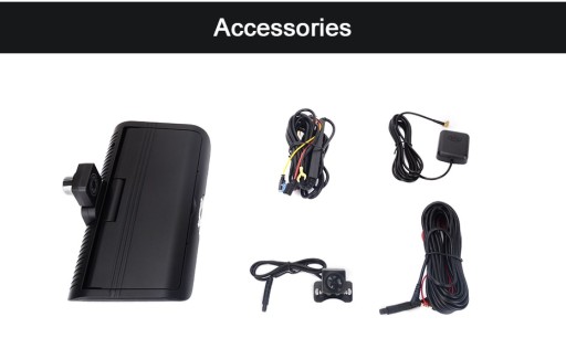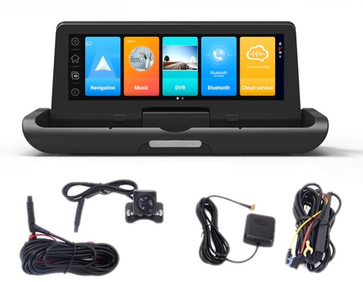 Konsola z panelem DVR, kamera wsteczna (przewód 5.6m lub za dopłatą 10m), wideorejestrator, kamera cofania, wyświetlacz dotykowy 8", Lokalizator GPS, nawigacja, aparat, automatyczny start, czujnik ruchu, nagrywanie dźwięku, 8" wyświetlacz dotykowy, GSM 4G, 3-osiowy czujnik przeciążeń - G-Senor, tryb parkingowy, nagrywanie w pętli, zestaw głośnomówiący, wbudowany mikrofon i głośnik, wbudowany moduł Wi-Fi, czytnik kart pamięci TF/SD, transmiter FM, złącze mini USB, Android 8.1, kąt widzenia kamery przedniej 150°, tylej 120°, wsparcie programów do asysty głosowej, ADAS, kamera IP, zdalny monitoring, WDR, Instrukcja obsługi w języku angielskim,