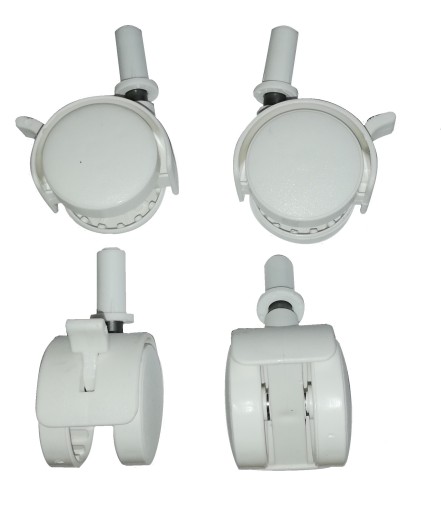 Skład kompletu wchodzą 4 kółka koloru białego z hamulcem