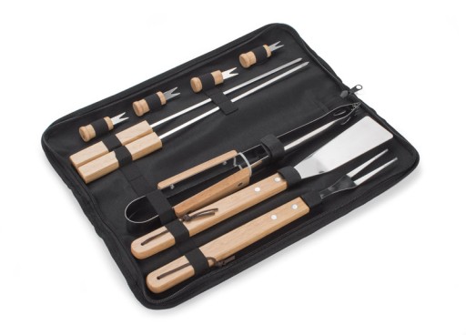 W zestawie znajduje się łopatka, widelec, szczypce, szpile do szaszłyków (2 szt.) i uchwyty do kukurydzy (4 szt.).