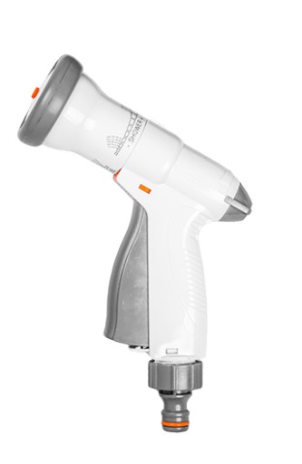 Pistolet do zraszania wielofunkcyjny "EXCLUSIVE". Opatentowany sposób zamykania i otwierania wypływu wody oraz regulacji dopływu wody. Wykonany z najwyższej jakości tworzywa ABS. Testowany powietrzem na urządzeniach ciśnieniowych. 2 lata gwarancji. Dostępny w kolorze szaro-białym.