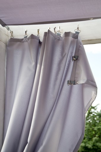 - Dodatkowo posiadają po bokach kółeczka(oczka kaletnicze), co umożliwia przymocowanie zasłon do altany przez co zasłony nie fruwają przy silnym wietrze.
