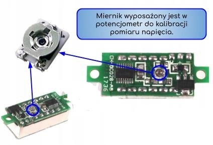 Miernik posiada wbudowany potencjometr dzięki któremu można dokonać kalibracji i wyregulować wyświetlaną wartość napięcia zgodną z rzeczywistością - kalibracja.