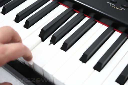 Ważona klawiatura młoteczkowa przywołuje odczucie obcowania z pianinami akustycznymi, posiada 5 ustawień czułości aby idealnie dopasować się do preferencji grającego.