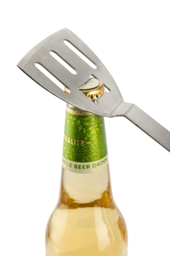 Metalowe łopatka , widelec i pędzelek silikonowy - niezbędnik do grilla + otwieracz do butelek i korkociąg zapewnią kompleksowe wyposażenie w arcy kompaktowej formie.