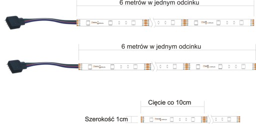 Jeśli taśma okaże się za długa można ją przycinać co segment 10cm