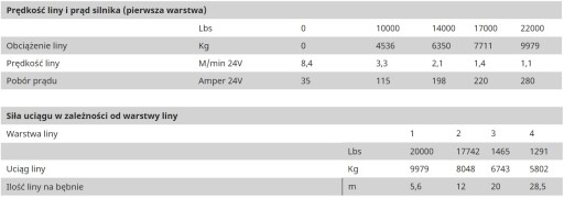 Lina stalowa 30 m o średnicy 12 mm posiada mniej więcej trzykrotnie większą wytrzymałość uciągu liny niż nominalna nośność urządzenia.