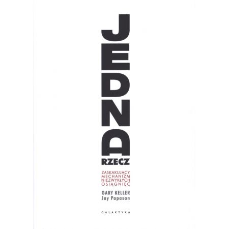 Chcesz więcej! Więcej pieniędzy, czasu i satysfakcji z życia. A zarazem chcesz mniej! Mniej pracy, obowiązków i stresu. Autorzy z list bestsellerów New York Timesa – Gary Keller i Jay Papasan – uczą, w jaki sposób koncepcja jednej rzeczy może całkowicie zmienić podejście do każdej dziedziny życia, wpłynąć na dokonywane wybory i odnoszone rezultaty. Czasami twoja jedna rzecz będzie pierwszą rzeczą na liście. Czasami jedyną. Ale zawsze to właśnie ona przyniesie niezwykłe efekty. Jaka jest twoja jedna rzecz?
