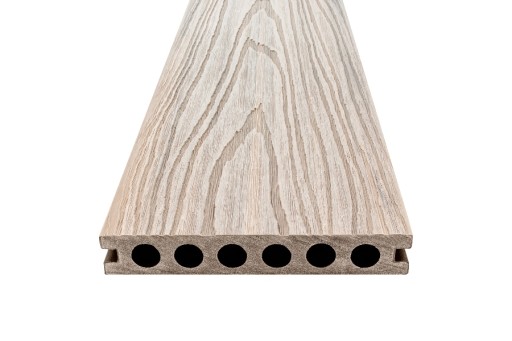 Na zewnętrznej polimerowej warstwie deski jest deseń drewna odzwierciedlający naturalne usłojenie drewna prze co na tarasie daje odczucie niemalże desek drewnianych.