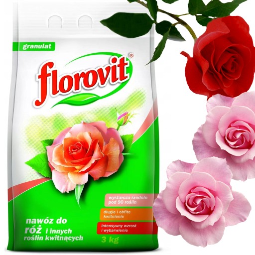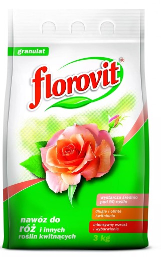 Florovit do róż jest to nawóz o wysokiej zawartości składników mineralnych w formach dostosowanych do wymagań róż. Stosowanie Florovit sprzyja intensywnemu wzrostowi krzewów, pobudza wybijanie pędów bocznych, zapewnia intensywne wybarwienie liści i kwiatów.