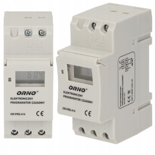 Elektroniczny programator czasowy z wyświetlaczem LCD przystosowany do montażu na standardowej szynie DIN TH-35 mm. Służy do ustawienia czasu włączania i wyłączania urządzeń elektrycznych takich jak: ogrzewacze wody, oświetlenie, silniki, pompy itp. Urządzenie posiada: 8 programów czasowych, ustawienie cyklu dziennego lub tygodniowego, podtrzymanie ustawień zegara w przypadku zaniku prądu.