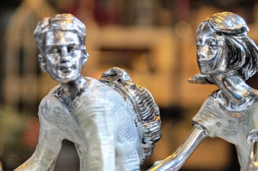ФИГУРКА СКУЛЬПТУРА ПАРА НА ВЕЛОСИПЕДАХ, ВЕЛОСИПЕДИСТАХ