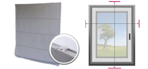 - Dla wersji montażu (1) ściana/sufit i (2) ściana nad glifem: Zmierz szerokość wnęki okiennej (glifu) i dodaj zakładki (np. 10 cm na dwie strony)