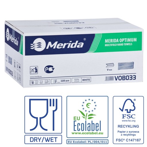 MERIDA RĘCZNIKI PAPIEROWE ZZ BIAŁE 3200 SZT., VOB033